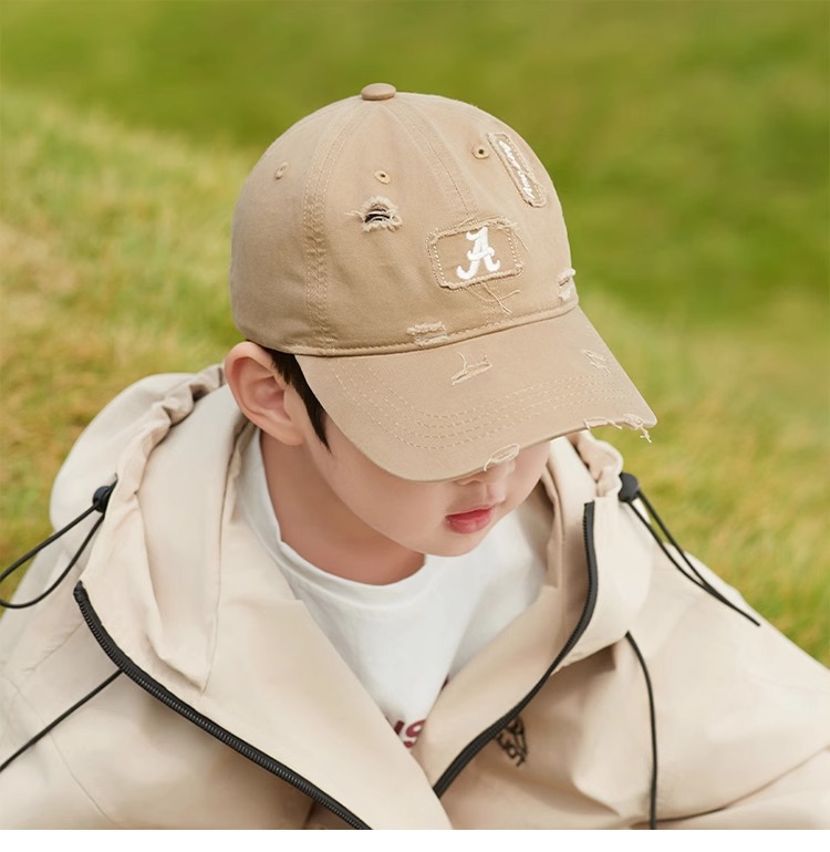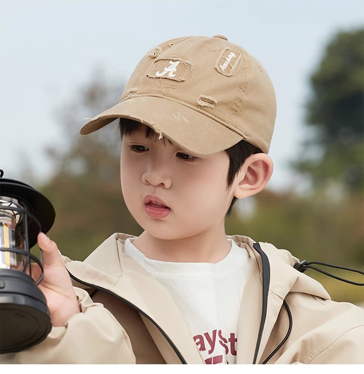 Children's Baseball Cap 2024 Spring/Summer New Sun Cap Boys And Girls Large Eaves Summer Sun Protection Khaki Baby Cap